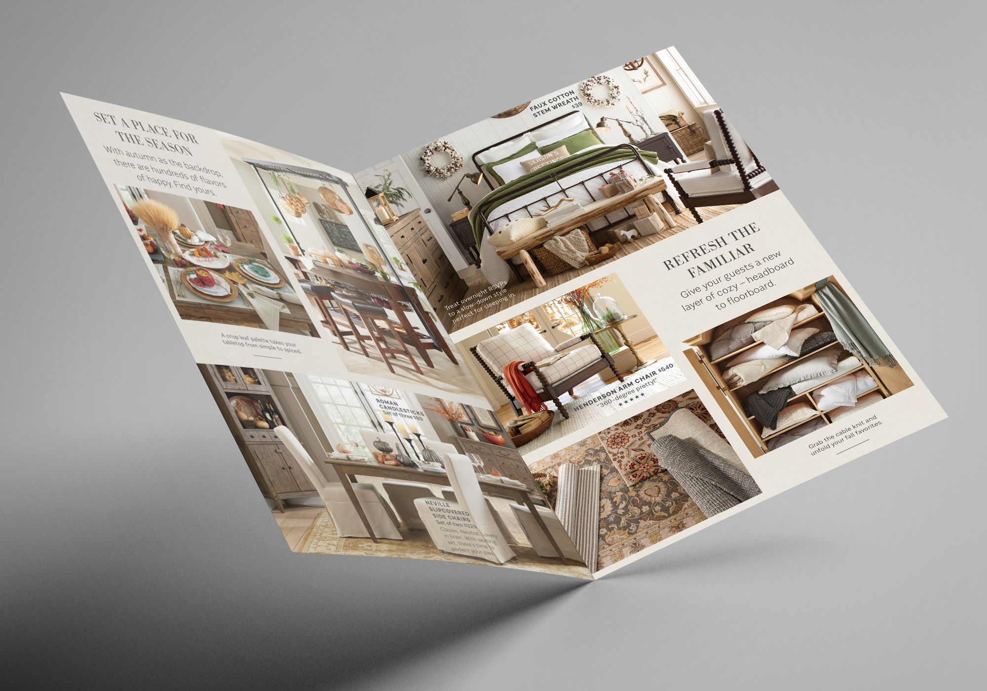 Alongside Birch Lane’s copy manager, identified seasonal editorial content to anchor each of the mailers around and show the evolution of the season. We supported each editorial story with relevant categories and product callouts to highlight value and quality. With channel best practices in mind, I selected images that showed the evolution of the season and showcased our diverse style offering.